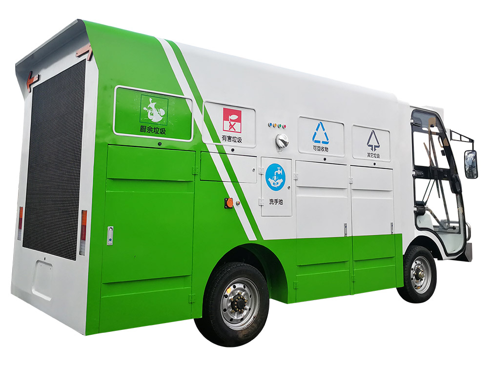 ◆ hand washing basin: the right side of the vehicle is equipped with a hand washing basin, which can be used to clean and wash hands after dismantling the garbage can and putting garbage;