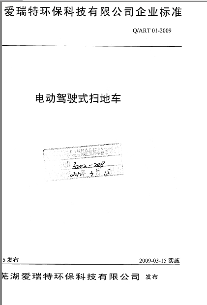 日前,安徽省質量技術監督局為蕪湖愛瑞特環保科技有限公司電動駕駛式掃地車、電動駕駛式洗地機頒發了企業產品執行標準證書,據了解,該項標準將填補我國保潔設備行業標準的空白,并為今后國家標準的制定提供依據。