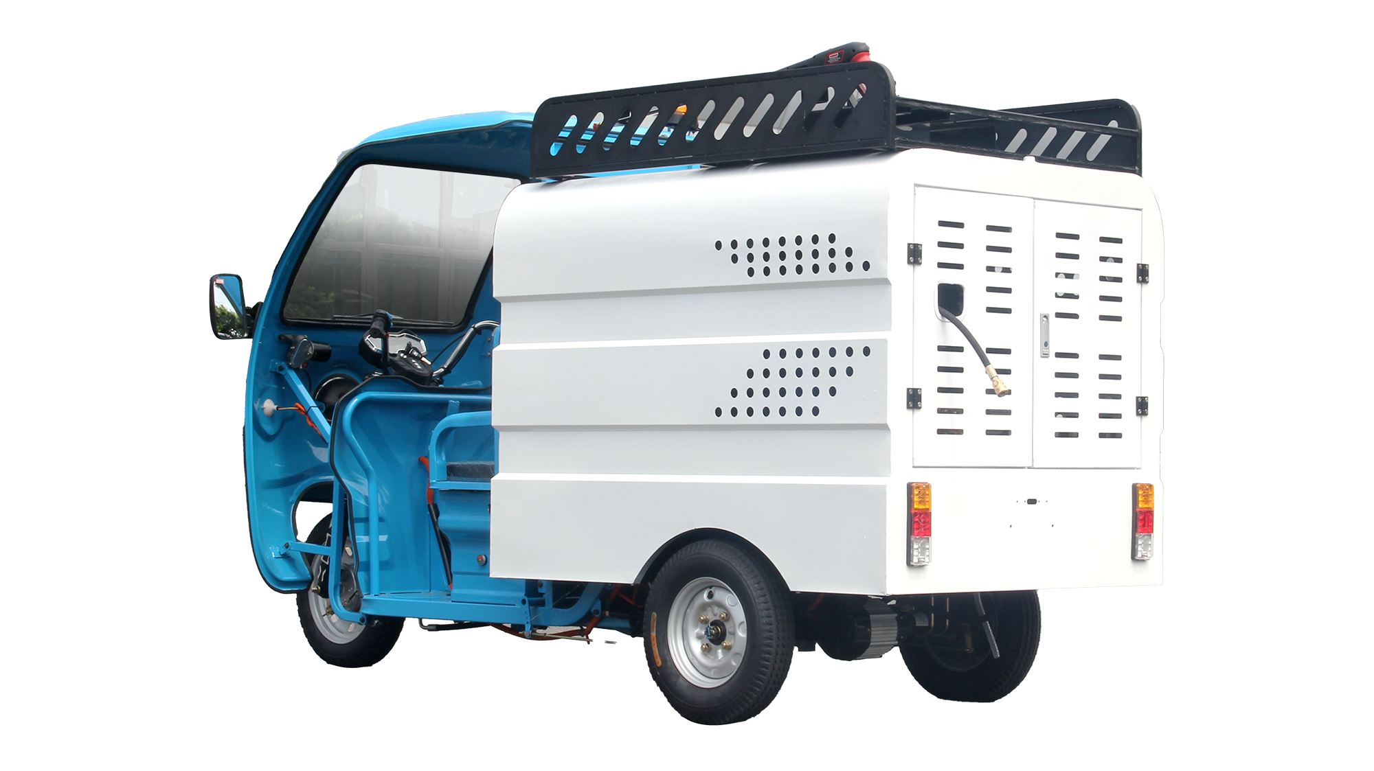 瑞保Q4L純電動高壓沖洗車主要用于人行道、非機動車道、背街小巷、市政園林、物業小區等路面的沖洗養護,可與掃地車組合作業,后置高壓水槍,可沖洗果皮箱、垃圾桶、小廣告等。